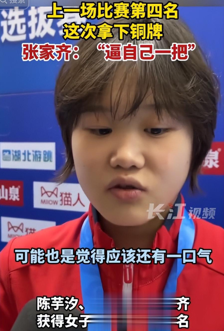 所以 2025 年举办的全运会,张家齐还是来了。这次她排名下滑到第 10 名,赛后采访时眼眶泛红。